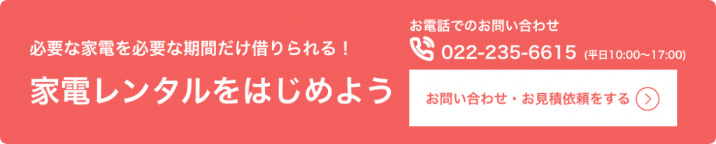 必要な家電を必要な期間だけお得にレンタル。一人暮らしの学生や社会人、単身赴任や転勤の多い方におすすめです。